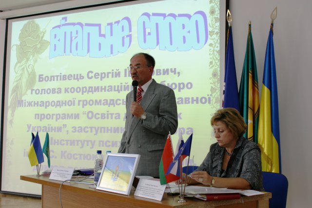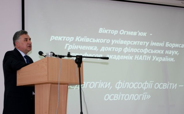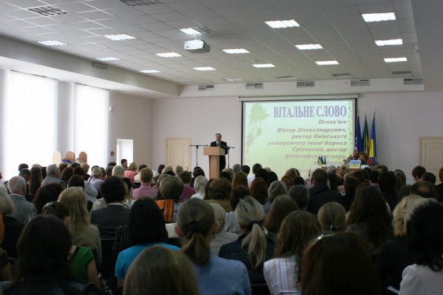 З вітальним словом до учасників конференції звернувся ректор Київського університету імені Бориса Грінченка, доктор філософських наук, професор, член-кореспондент АПН України В.О.Огнев’юк.