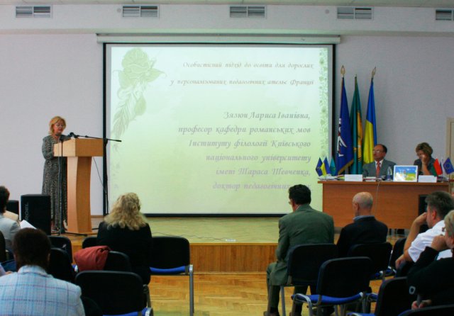 З науковими доповідями на пленарному засіданні виступили: завідувач науково-дослідної лабораторії освітології Київського університету імені Бориса Грінченка, голова благодійного фонду імені Антона Макаренка, доктор педагогічних наук, професор, член-кореспондент НАПН України С.О.Сисоєва (доповідь: “Інтерактивні технології навчання дорослих”), керівник Секретаріату координаційного бюро Міжнародної громадсько-державної програми “Освіта дорослих України”, старший науковий співробітник відділу інноваційних педагогічних технологій Інституту педагогічної освіти і освіти дорослих НАПН України, кандидат педагогічних наук Л.Є.Сігаєва (доповідь: “Андрагогіка – теорія ціложиттєваго розвитку особистості”), професор кафедри романських мов Інституту філології Київського національного університету імені Тараса Шевченка, доктор педагогічних наук Л.І.Зязюн (доповідь “Особистісний підхід до освіти для дорослих у персоналізованих педагогічних ательє Франції”), заступника директора Інституту психології імені Г.С.Костюка НАПН України, доктор психологічних наук, професор С.І.Болтівець (доповідь: “Андрагогіка і вікова психологія ціложиттєваого самовдосконалення дорослої людини”).