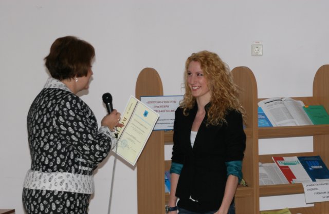 І місце – Сидорчик Руслана, Бабенко Світлана, Каленик Тетяна, Матвієнко Анна, студенти ІІ курсу Гуманітарного інституту Київського університету імені Бориса Грінченка (конкурсний проект “Цінність рідної мови”), та Бобровнік Євгенія, Шадська Анна, студенти ІІІ курсу Гуманітарного інституту Київського університету імені Бориса Грінченка (конкурсний проект “Сенс життя: миттєвості, хвилини, години, роки”).