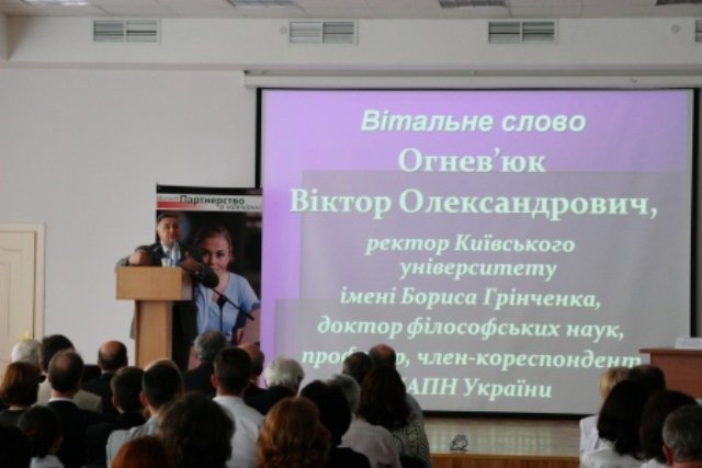 У перший день конференції – 13 травня, – який пройшов у стінах Київського університету імені Бориса Гріченка, учасники заходу взяли участь у пленарному засіданні, ведучими якого були директор Інституту інформаційних технологій і засобів навчання НАПН України, доктор технічних наук, професор, член-кореспондент НАПН України В.Ю.Биков та проректор з наукової роботи Київського університету імені Бориса Грінченка, доктор педагогічних наук, професор Л.Л.Хоружа. З вітальним словом до всіх присутніх звернувся ректор Київського університету імені Бориса Грінченка, доктор філософських наук, професор, член-кореспондент НАПН України В.О.Огнев’юк. З науковими доповідями виступили: директор Інституту інформаційних технологій і засобів навчання НАПН України, доктор технічних наук, професор, член-кореспондент НАПН України В.Ю.Биков, директор Інституту інформатики Національного педагогічного університету імені М.П.Драгоманова, доктор педагогічних наук, професор, дійсний член НАПН України М.І.Жалдак, проректор з науково-педагогічної роботи, інформаційних технологій, міжнародних зв’язків, завідувач кафедри інформатики Херсонського державного університету, доктор педагогічних наук, професор, заслужений працівник освіти України О.В.Співаковський, професор Національного університету м.Сан-Дієго (Каліфорнія, США), доктор педагогічних наук П.І.Сердюков, завідувач кафедри інформатизації освіти Московського міського педагогічного університету, доктор педагогічних наук, професор В.В.Гриншкун, завідувач кафедри інформатики і прикладної математики Московського міського педагогічного університету, доктор технічних наук, професор, член-кореспондент Російської академії освіти С.Г.Григор’єв (Російська Федерація). Під час пленарного засідання було вручено почесні грамоти НАПН України учителям, методистам, викладачам вищих навчальних закладів, котрі активно впроваджують ІКТ у навчальний процес.
