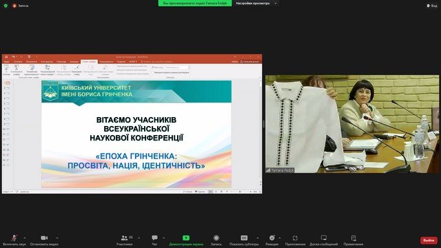 Пленарне засідання конференції розпочалося із презентації вишиванки Бориса Грінченка (з відтвореними орнаментом і кольорами) завідувачем навчально-виробничої майстерні «Тележурналістика» Мар’яною Ангеловою.