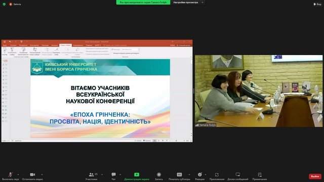 Завершила пленарне засідання відеопрезентація онлайн-проєкту «Борис Грінченко: 160» (О. Міхно, доктор педагогічних наук, старший науковий співробітник, Педагогічного музею України.