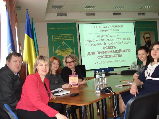14-15 березня 2012 року на базі Київського університету імені Бориса Грінченка (м. Київ) відбулася відкрита ювілейна сесія наукової школи з проблем творчості і технологій у неперервній професійній освіті «Освіта для інформаційного суспільства» (Відповідно до плану роботи Міністерства освіти і науки, молоді та спорту України і Національної академії педагогічних наук України).