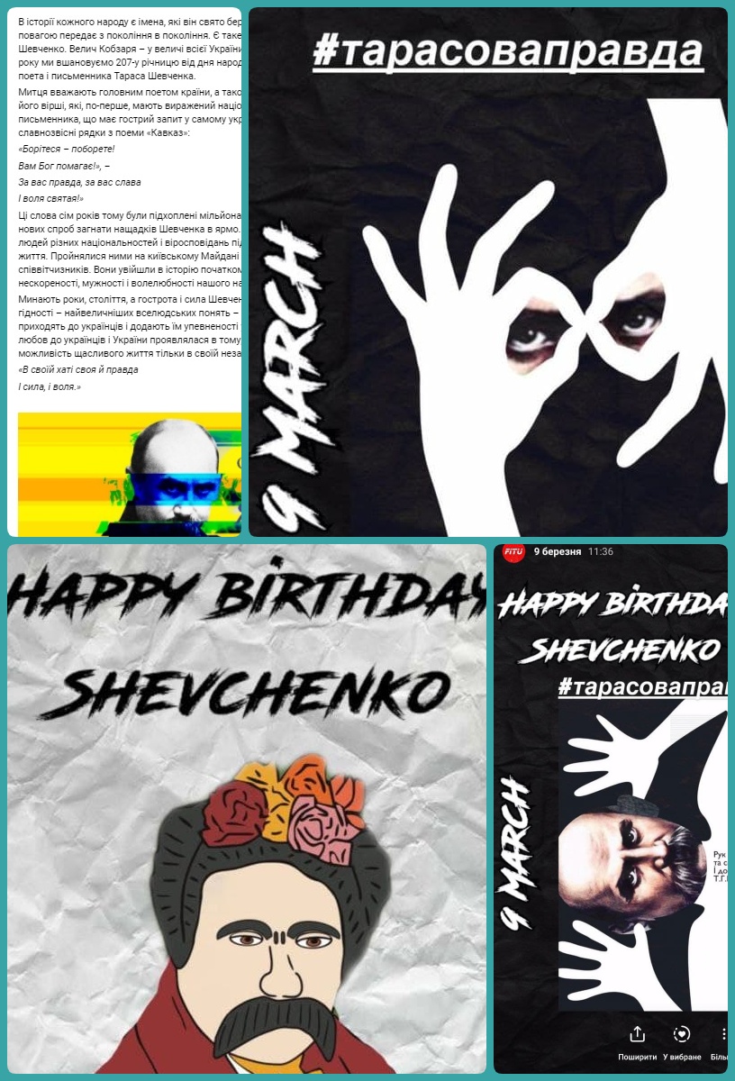 Факультет інформаційних технологій та управління розмістив на сайті факультету інформацію про життєвий та творчий шлях Тараса Шевченка, а в соціальній мережі Facebook - відеоролик під хештегом #ШевченкіанаФІТУ з віршем Тараса Шевченка «І мертвим, і живим, і ненарожденним землякам моїм в Украйні і не в Украйні моє дружнєє посланіє» (14.12.1845).