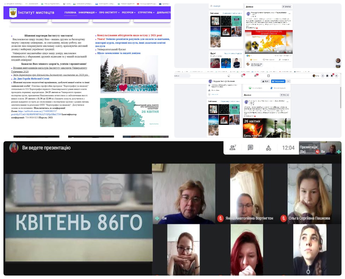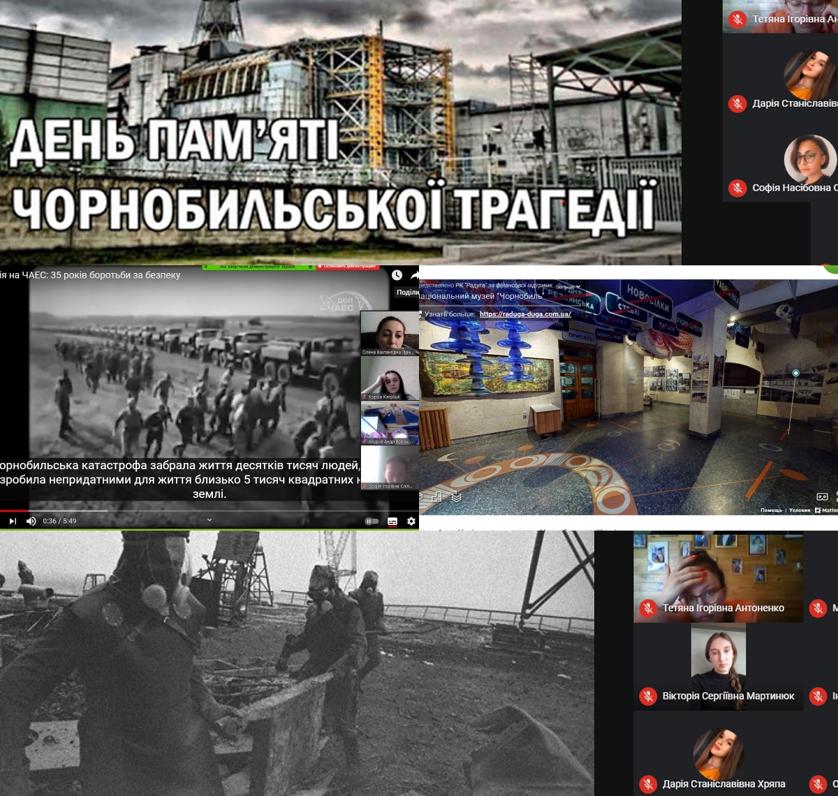 На соціальних сторінках Факультету права і міжнародних відносин було розміщено матеріали, рекомендовані Українським інститутом національної пам’яті, творчі відеоматеріали до 35-ої річниці аварії на Чорнобильській АЕС. Студенти мали можливість долучитися до перегляду онлайн-виставки “Чорнобиль: 35 років пам’яті” (Державна архівна служба України), документального проєкту «Люди Зони» (Суспільний телеканал «UA: Перший»), онлайн проєктів Національного музею «Чорнобиль», віртуальної виставки про життя Чорнобильського Полісся «Темний рай» (Національний центр «Український дім»). Зацікавились слухачі й культурно-соціальним музичним проєктом «Звуки Чорнобиля».
