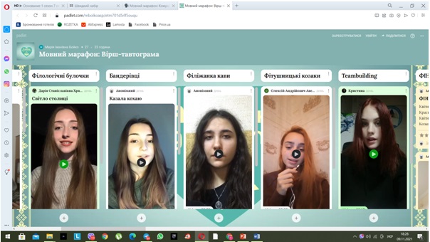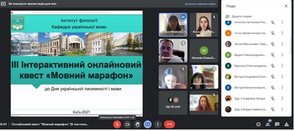 8 листопада 2021 року у Київському університеті імені Бориса Грінченка у рамках Тижня української писемності та мови відбувся ІІІ Інтерактивний онлайновий квест «Мовний марафон», у якому взяли участь 25 команд з 10 структурних підрозділів.