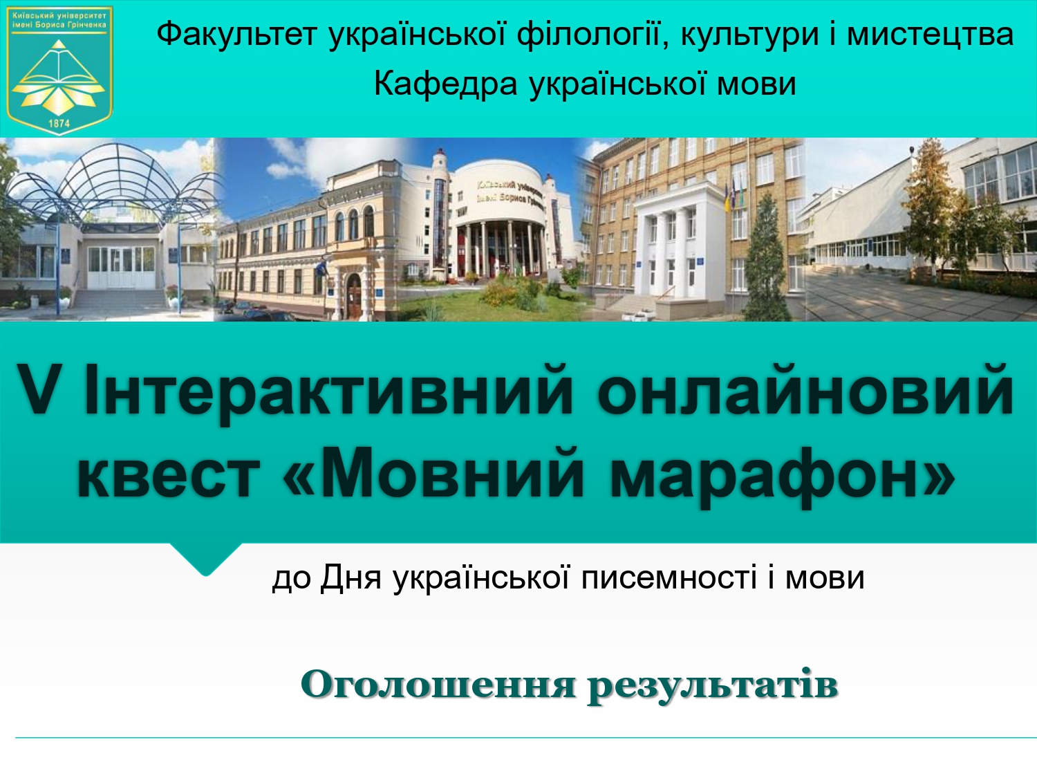 27 жовтня 2023 року в Університеті Грінченка в рамках відзначення Дня української писемності і мови відбувся Загальноуніверситетський онлайновий квест «Мовний марафон». Цьогоріч у заході взяло участь 30 команд. Це понад 200 студентів із 14 структурних навчальних підрозділів.