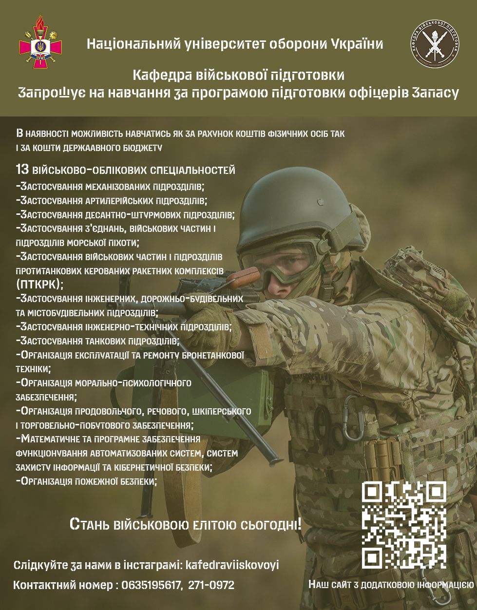 Офіційний сайт Кафедри військової підготовки Національного університету оборони України імені Івана Черняховського: https://nuou.org.ua/u/stru/centers/kvp/
