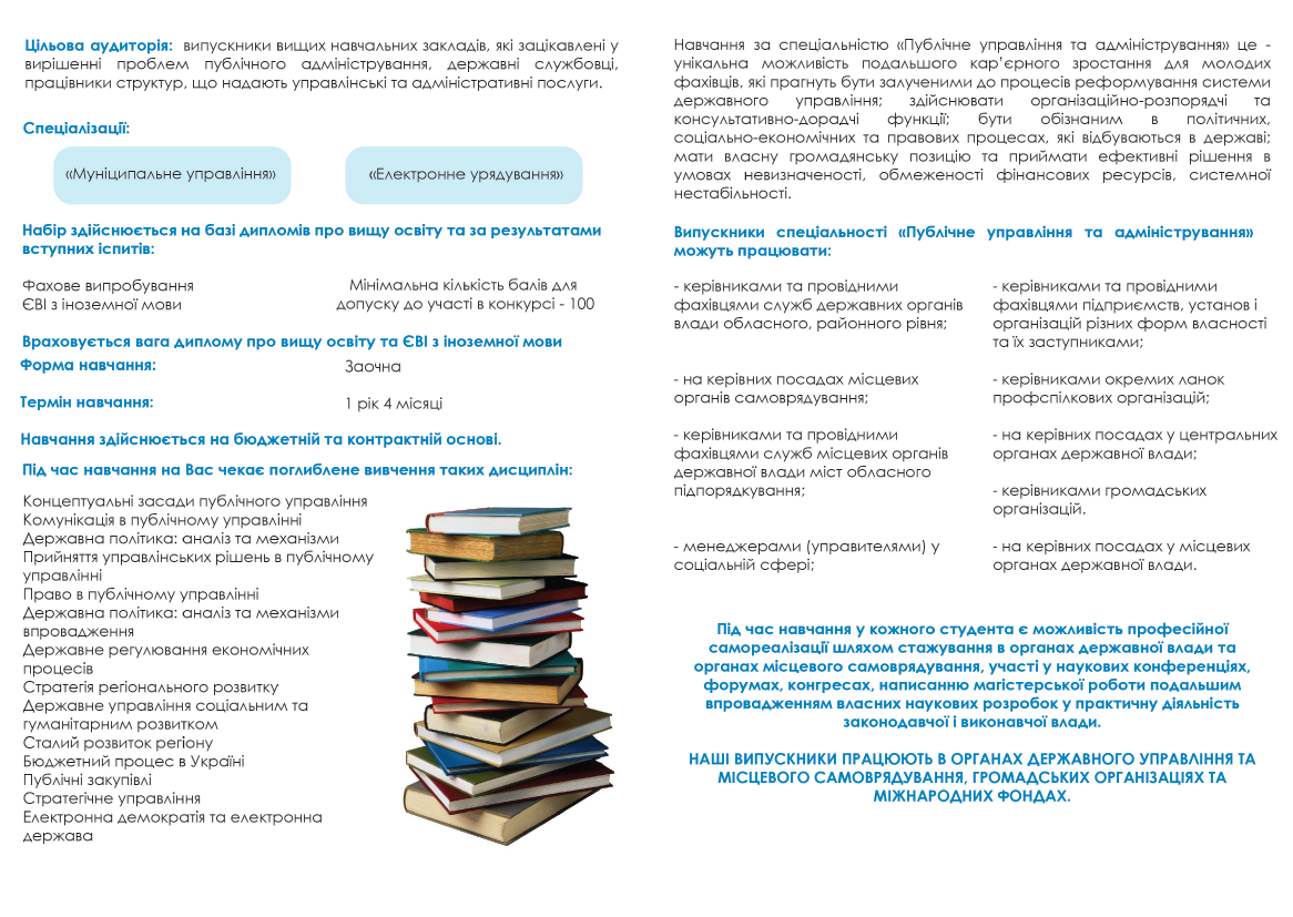 Спеціальність «Публічне управління та адміністрування» освітня програма «Державне управління»