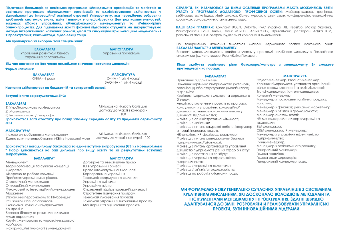Спеціальність «Менеджмент» освітня програма «Менеджмент організацій»