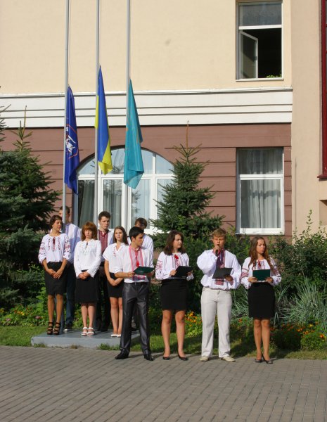 Церемонія підняття Державного Прапора України супроводжувалася державним гімном та привітанням від ректора.
