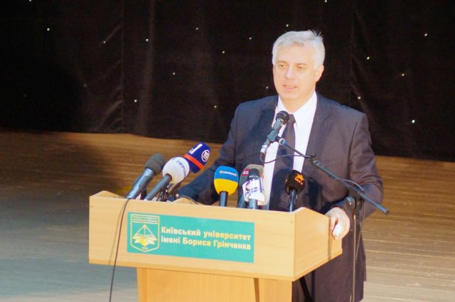 С.М.Квіт у своєму виступі зазначив, що саме Київський університет імені Бориса Грінченка один з небагатьох університетів Києва інституційно підтримав Революцію Гідності. Вітаючи з Днем працівників освіти, Міністр сказав: «Професія вчителя є дуже потрібною та престижною, а вплив педагогів на суспільство є просто величезним, адже всі люди протягом свого життя згадують свого першого вчителя та своїх найкращих вчителів».