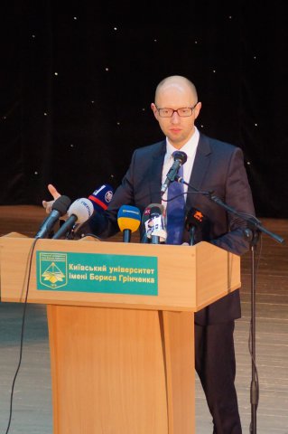 Прем`єр-міністр України Арсеній Петрович Яценюк у своєму виступі зазначив: «Я маю честь виступити перед Вами та попросити Вас робити велику справу для країни. Велику справу у тому, що Україна може творити великі звершення тільки тоді, коли є кому це робити, коли є люди, які знають, які вміють, яких Ви навчили, яким Ви заклали основи знань і сформували цим особистість кожного. Від Вас залежить формування особистості України, і саме тому на нашому з Вами шляху дуже багато змін, які треба провести. Ще раз підкреслюю, що такі зміни проводяться виключно людьми.