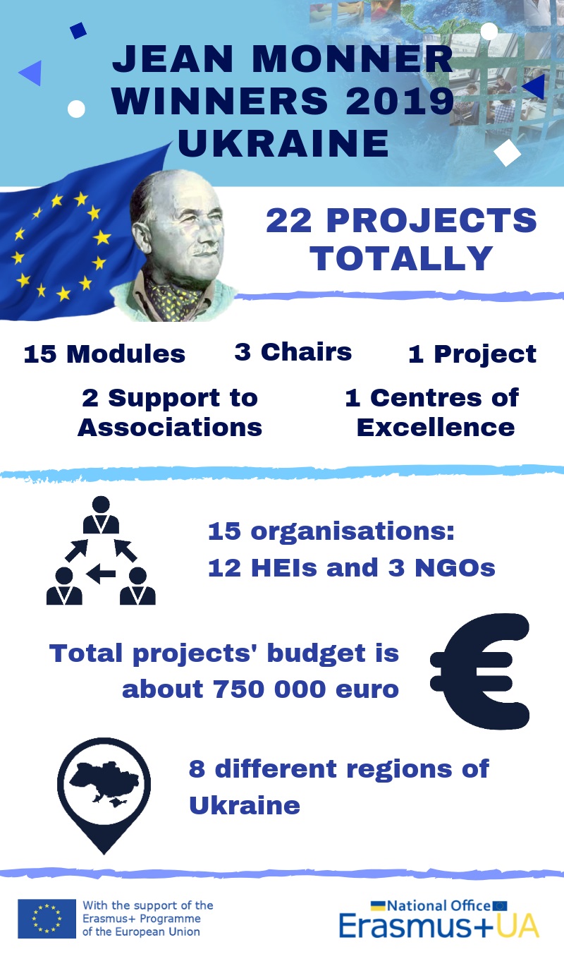 Серед 285 проектів-переможців з усього світу конкурсу 2019 року Програми Європейського Союзу Еразмус+ напряму Жан Моне, Україна виграла 22 проекти, і Університет Грінченка, який представляла команда НДЛ інтернаціоналізації вищої освіти, увійшов до цього числа.