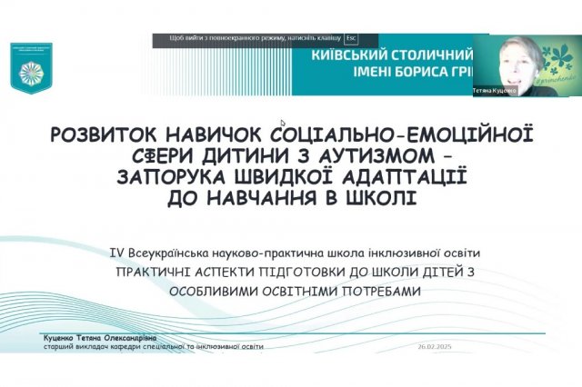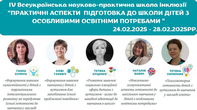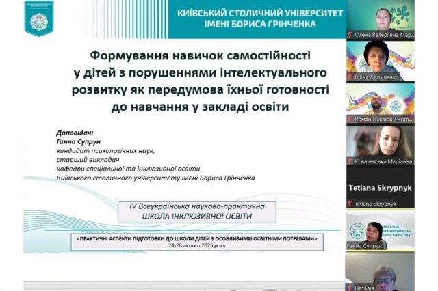 З 24 по 28 лютого 2025 року на Факультеті психології, соціальної роботи та спеціальної освіти Київського столичного університету імені Бориса Грінченка відбулася ІV Всеукраїнська науково-практична школа інклюзивної освіти «Практичні аспекти підготовки до школи дітей з особливими освітніми потребами».