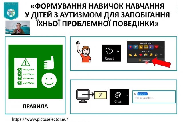 - 25 лютого вебінар «Формування навичок навчання у дітей з аутизмом для запобігання їхньої проблемної поведінки» Софії Ганевич, старшого викладача кафедри спеціальної та інклюзивної освіти Факультету психології, соціальної роботи та спеціальної освіти Київського столичного університету імені Бориса Грінченка;