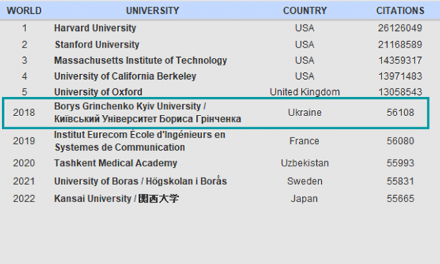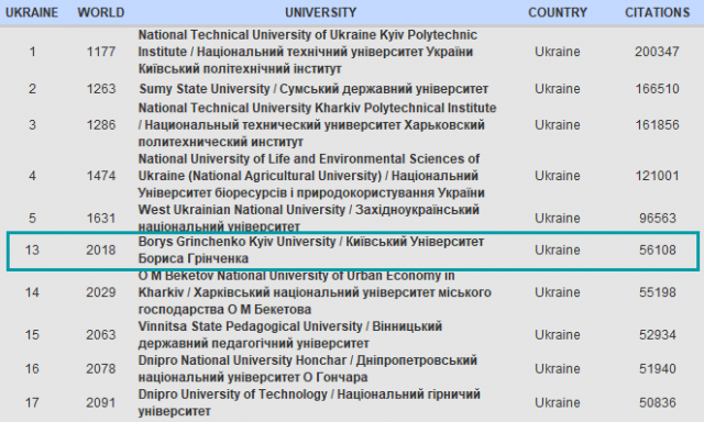 Університет Грінченка посів 13 місце в “TRANSPARENT RANKING: Top Universities by Citations in Top Google Scholar profiles”