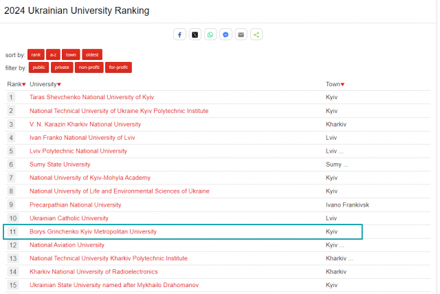Університет Грінченка в рейтингу UniRank