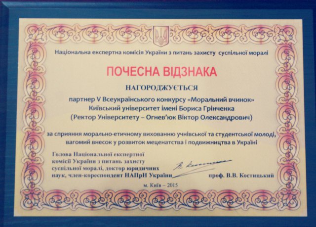 Відзнаки Київського університету імені Бориса Грінченка у V Всеукраїнському конкурсі «Моральний вчинок-2015»