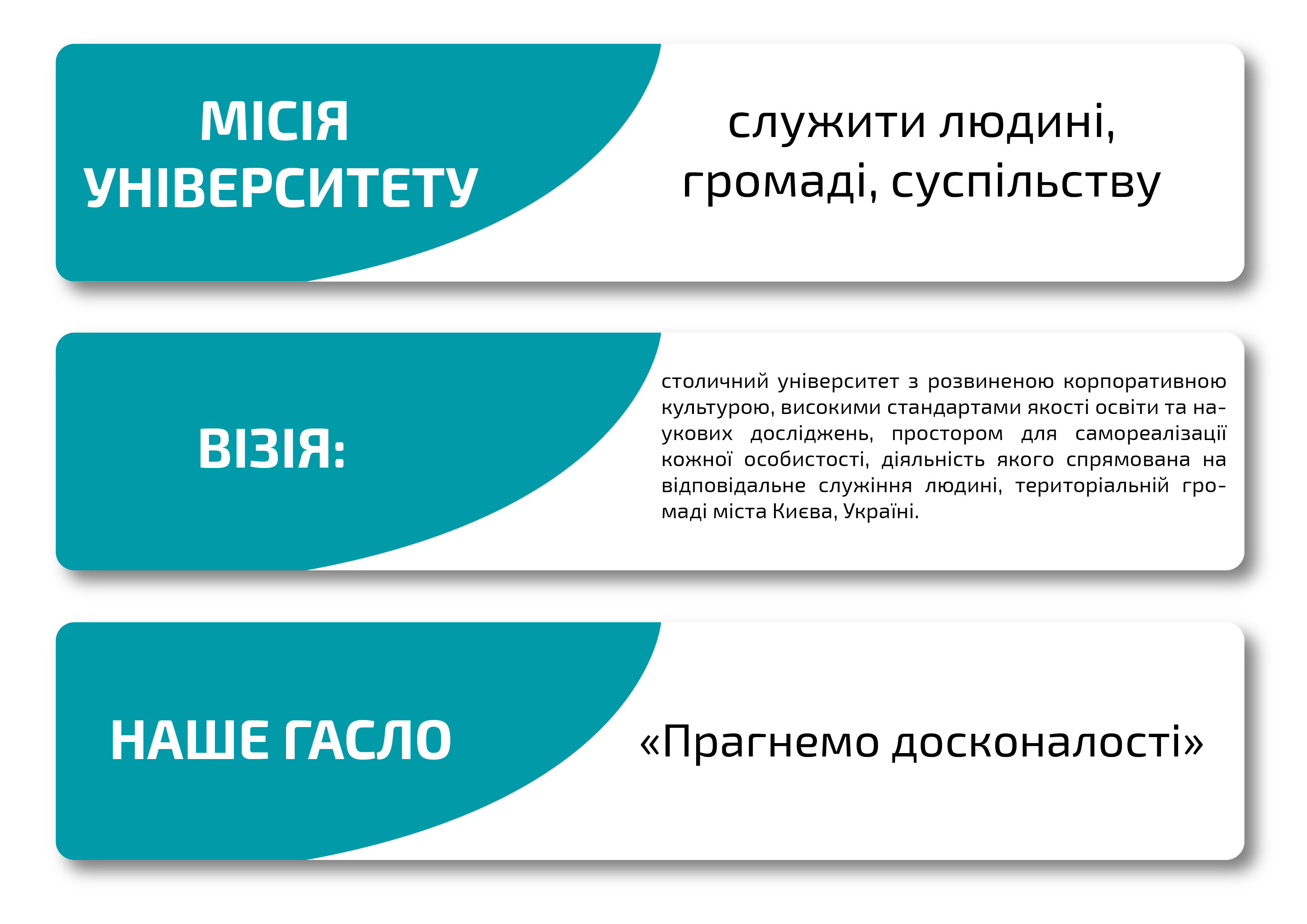Місія — служити людині, громаді, суспільству.