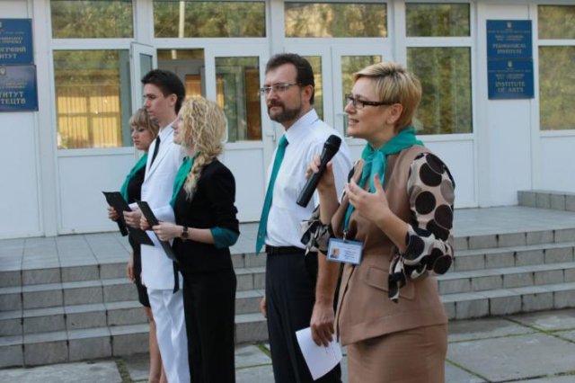 В урочистостях взяли участь Ректор – Віктор Олександрович Огнев’юк, адміністрація Університету, директори інститутів, професорсько-викладацький склад, студенти. Під звучання Гімну України, розвиваючись на хвилях серпневого вітру, уособлюючи безкрає небо і родючі поля, замайорів у небі жовто-блакитний стяг, який торкнувся найщиріших почуттів грінченківців.