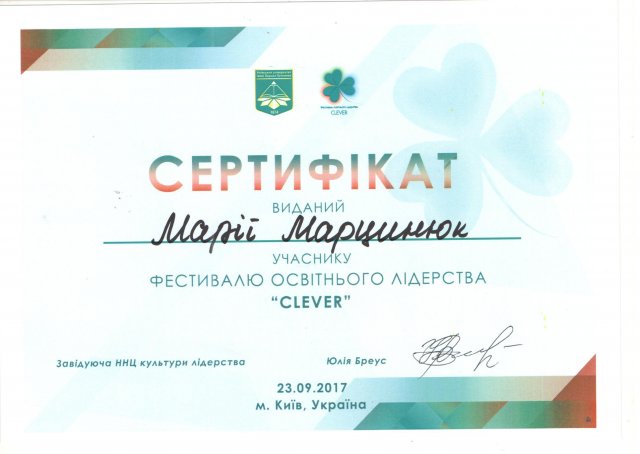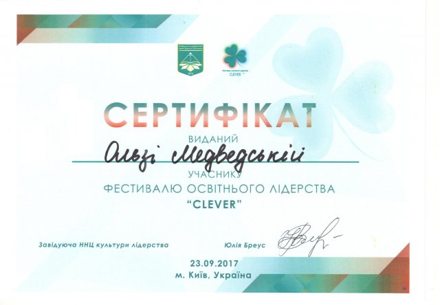 23 вересня 2017 р. у Київсьому університеті імені Бориса Грінченка пройшов І Фестиваль освітнього лідерства "CLEVER". В його роботі взяли активну участь співробітники НМЦ соціально-гуманітарної взаємодії та організації дозвілля студентів.