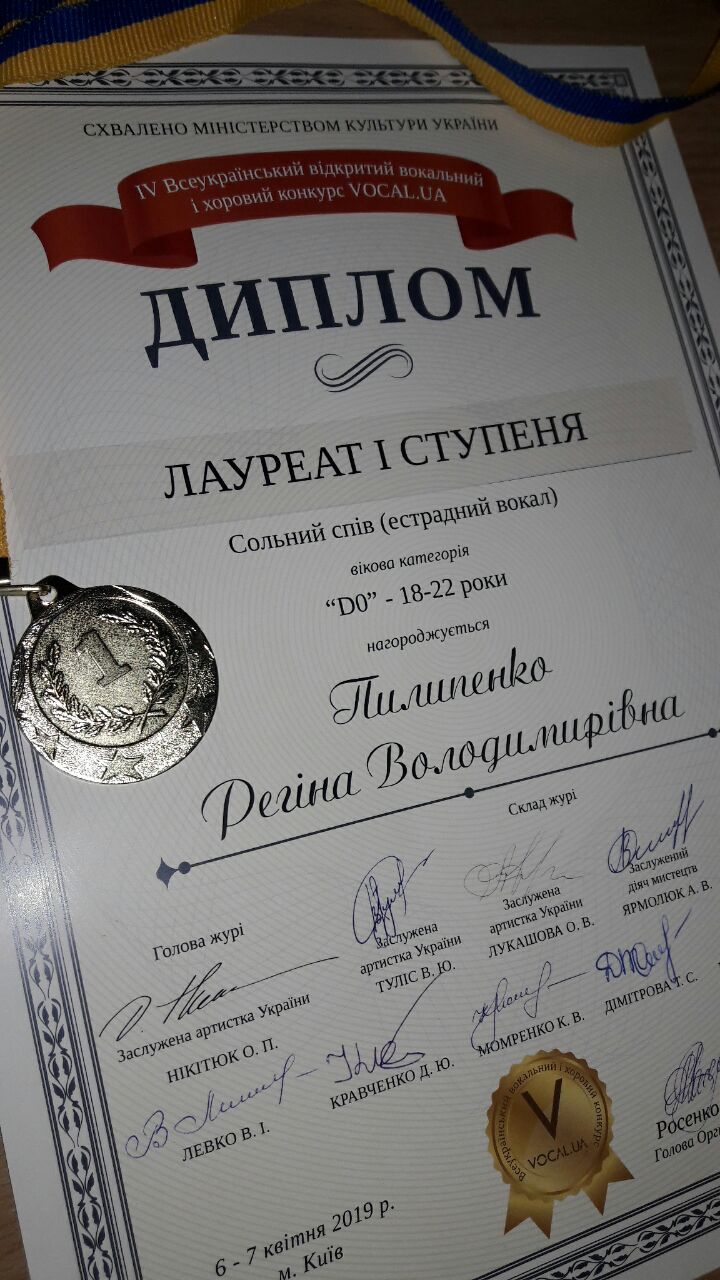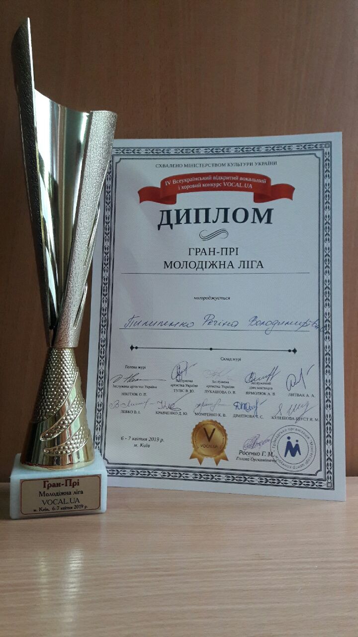 Отже, вітаємо із отриманням найвищої нагороди Фестивалю «Vocal.UA» - Гран-Прі Регіну Пилипенко та із отриманням І місця – Олександру Лихоту. Найвищою винагородою та визнанням високої професійної майстерності стала нагорода - «За великий внесок у музичну освіту», який був вручений Наталії Машковській за багаторічну підготовку учасників різноманітних фестивалів та конкурсів.