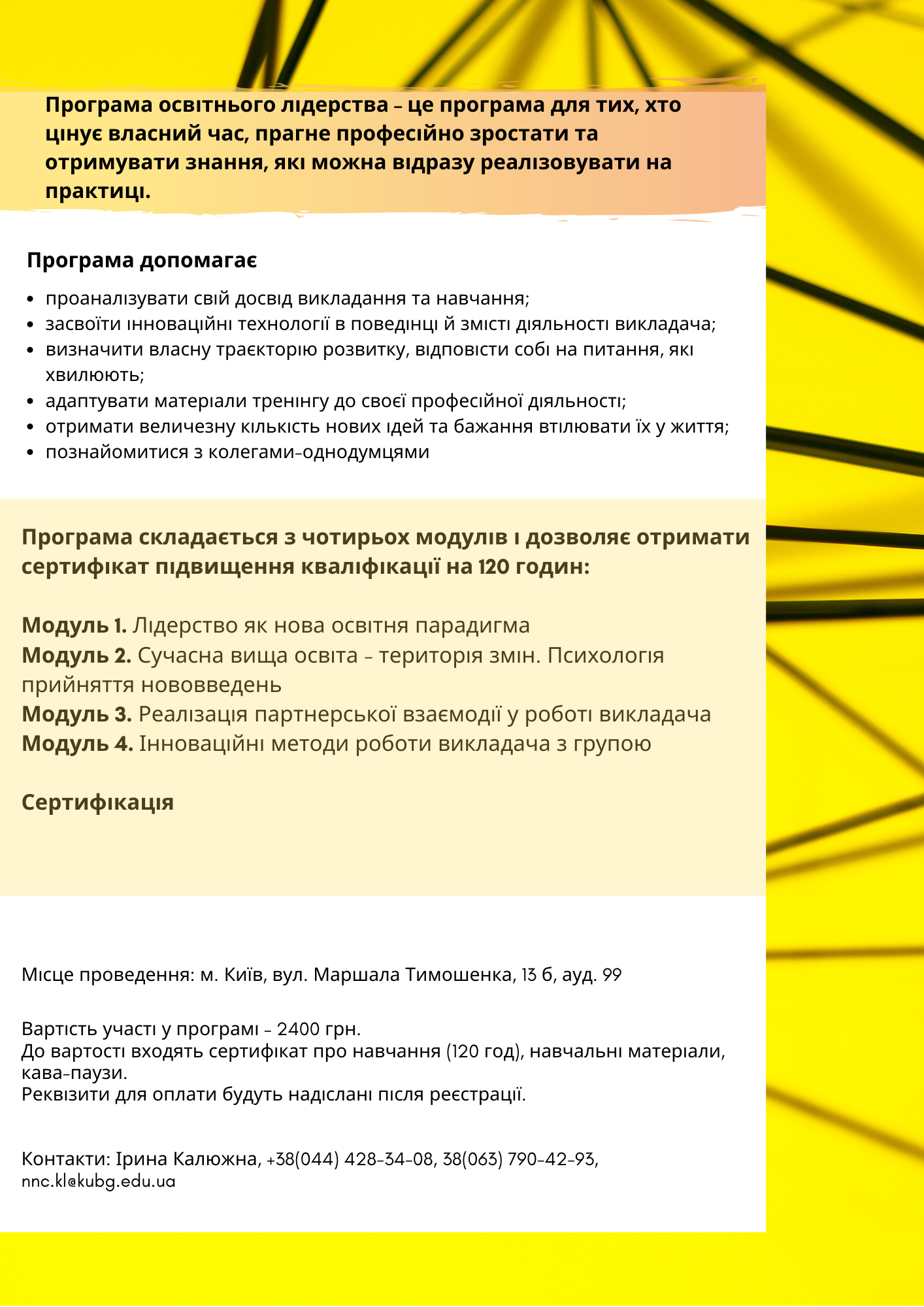 - Програма підвищення кваліфікації для педагогічних працівників закладів загальної середньої освіти у Цифровому хабі інноваційних рішень Київського столичного університету імені Бориса Грінченка «Використання імерсивних технологій в освітньому процесі»