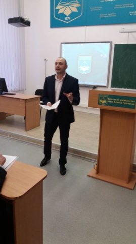 Сергій Мосьондз – доктор юридичних наук, професор Університету сучасних знань ознайомив усіх присутніх заходу із науковим правом у контексті європеїзації юридичної освіти в Україніі наголосив на тому, що Українська держава вступила у новий етап державного розвитку, що характеризується появою нових відносин, які вимагають відповідного правового регулювання. Зміни у суспільному житті не могли не торкнутися й відносин, які виникають у сфері науки, що мало своїм наслідком появу ідей про необхідність формування нової галузі права – наукового права. На жаль, приходиться констатувати, що юридична наука далеко не завжди орієнтується на потреби суб’єктів правозастосовної діяльності, яких зокрема навряд чи задовольнить термін «комплексна галузь права» під час вирішення правових спорів, у нашому випадку, за участю суб‘єктів наукової діяльності, оскільки суддям необхідно чітко розуміти правову природу спірних правовідносин, яка, зрозуміло, не може бути комплексною. Невірне визначення правової природи спірних правовідносин, як наслідок, призводить до порушення права фізичних та юридичних осіб на судовий захист порушених прав.