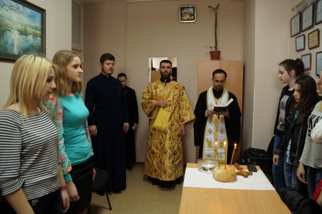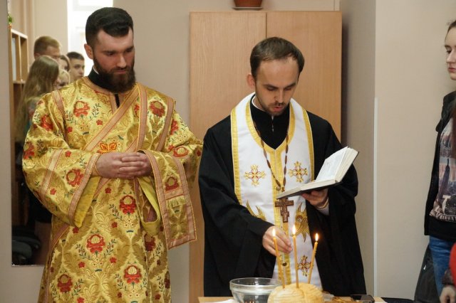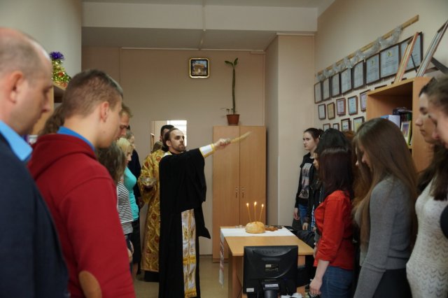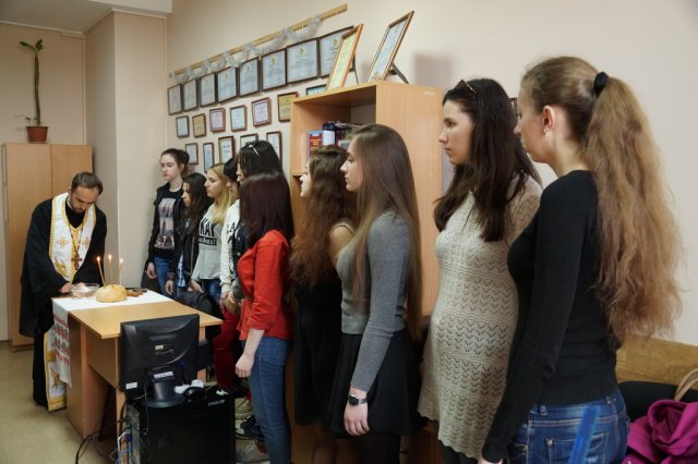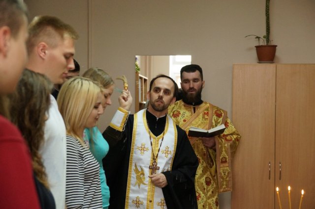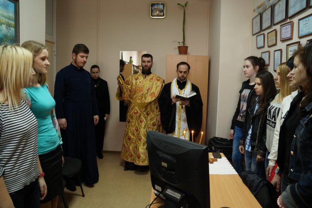19 квітня 2016 р. відбулося освячення кабінету колективу юридичної клініки за участю і сприянням голови Первинної профспілкової організації студентів Оксани Перепельченко. Таїнство обряду здійснили протодиякон Василь Дідора – кандидат церковно-історичних наук, викладач-інспектор Київської православної богословської академії, священик у Михайлівській церкві Видубицького Свято-Михайлівського чоловічого монастиря; протоієрей Павло Мельник – кандидат богословських наук, старший викладач кафедри богослов’я КПБА, директор Наукової бібліотеки КПБА, другий священик парафії Святих Жінок Мироносець м. Києва; священик Іван Сидор – кандидат церковно-історичних наук, викладач кафедри церковної історії КПБА, інспектор КПБА, священик у храмі Святого благовірного князя Ярослава Мудрого (Мала, Тепла Софія).