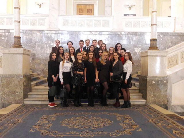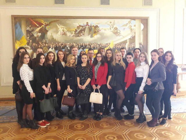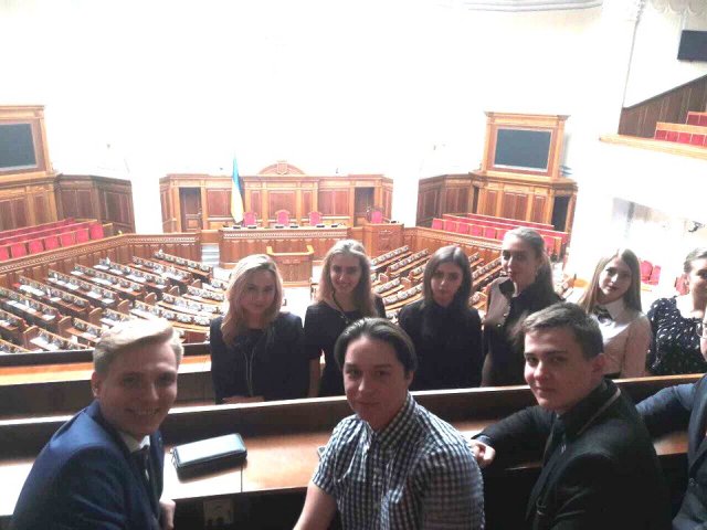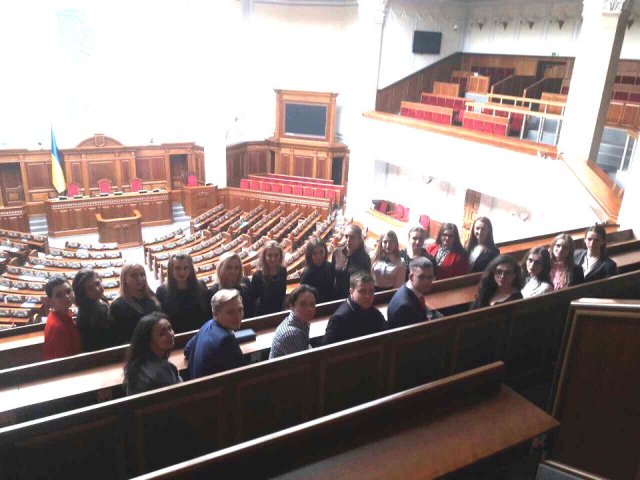 Студенти ІІ, ІІІ та ІV курсів Факультету права та міжнародних відносин разом із колективом ЮК «Астрея» відвідали Верховну Раду України – єдиний законодавчий орган державної влади України. Захід приурочений до відзначення 100 років відколи у березні 1917 р. була створена Українська Центральна Рада – стала першим попередником сучасного українського Парламенту. Вона розпочала розбудову української державності шляхом проголошення Універсалів та ухвалення 1918 року Конституції України. З того часу відбулося багато державотворчих та правотворчих подій, які супроводжувалися зміною влади та політичних режимів. Після Центральної Ради естафета державотворення перейшла до Гетьманату Павла Скоропадського, який взявся до створення єдиного представницького органу – Сойму. Безпосереднім конституційним попередником Верховної Ради України була Верховна Рада УРСР, а перший український радянський парламент було скликано 1938 року, проте засідання на Грушевського, 5 розпочалися тільки в літку 1939 року. Верховна Рада УРСР обиралася громадянами республіки на основі загального, рівного і прямого права. Проте самі вибори жорстко контролювалися Комуністичною партією України. За всю історію Рада скликалася 11 разів. Кількість депутатів становила 650 осіб, а після 1989 року була скорочена до 450. Термін повноважень був 4 роки. Від 60 % до 70 % складу парламенту становили. Останні вибори до Верховної Ради УРСР в умовах існування Радянського Союзу відбулися 1990 року. Після прийняття Акту проголошення незалежності України перетворилася на Верховну Раду України. З дня проголошення незалежності та обрання першим Президентом України – Леоніда Кравчука, Верховна Рада України скликалася 8 разів, останні вибори до ВР України відбулися 26 жовтня 2014 року. Сьогодні діє Парламент VIII скликання у складі 423 депутатів, з яких 223 створюють Коаліцію (Блок Петра Порошенка та Народний фронт), 153 – опозиція, 47 – позафракційні і 27 – вакантні місця.